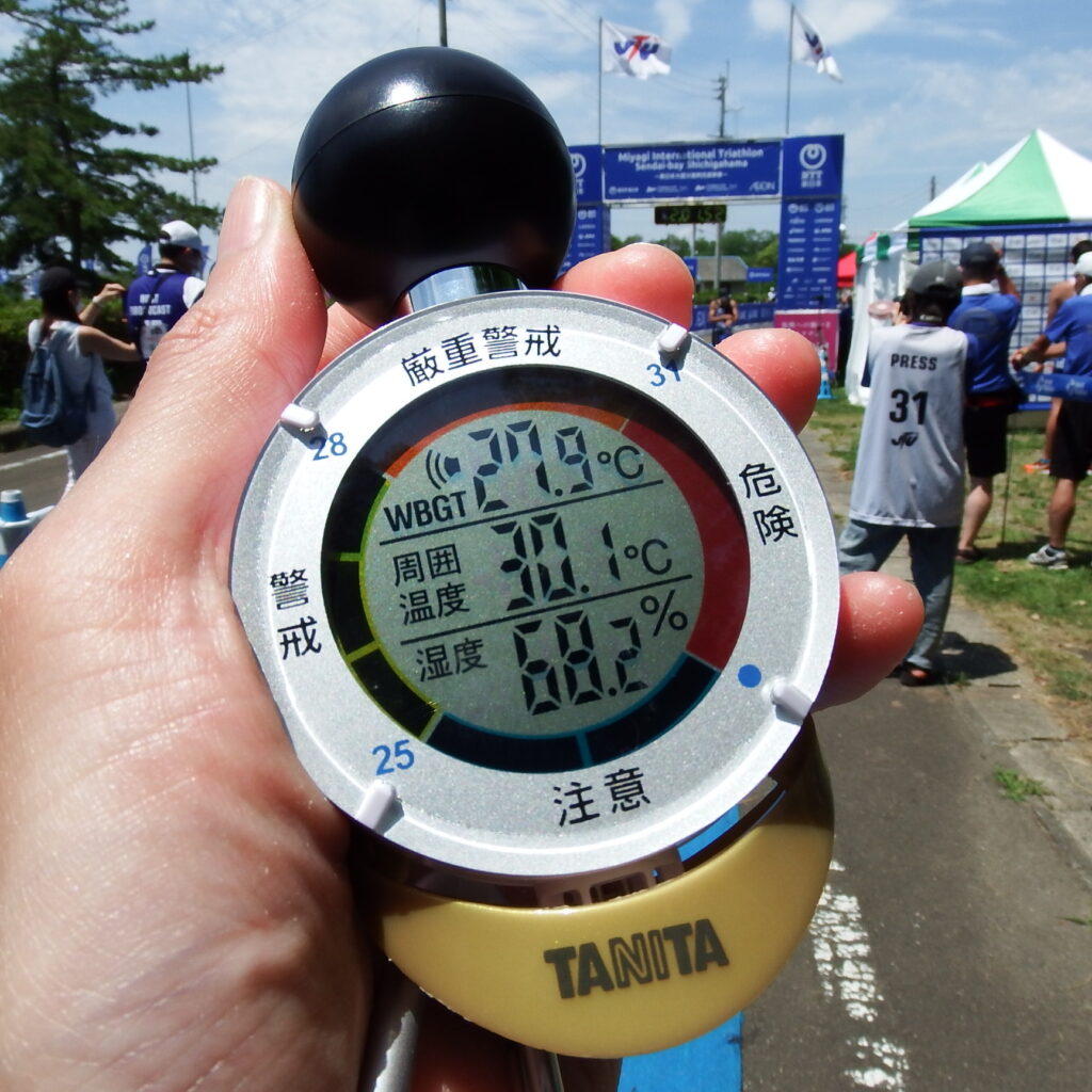 当日は朝から暑さが厳しかったです。熱中症対策としてランの距離が短縮されました(10→5kmへ)。