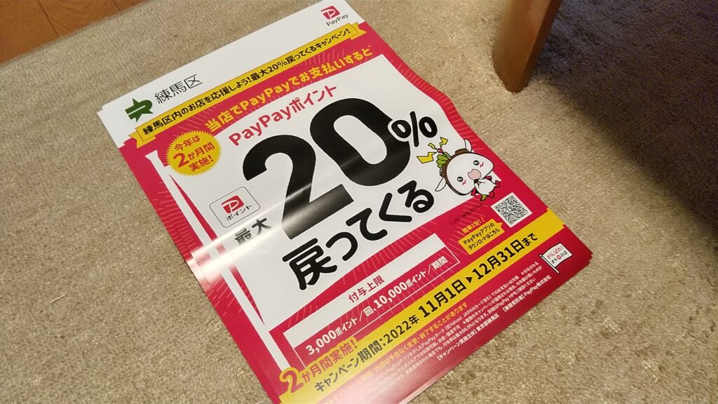 12月中はPayPayで最大20%のポイント還元キャンペーンをやっているそうで、PayPay決済がかなりお得となっております。