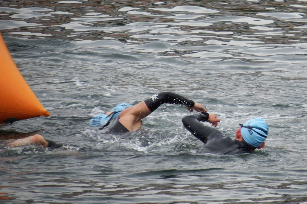 水に入った瞬間、冷たく感じたので、アームカバーを着けて正解だったな、と思いながら泳ぎ始めました。