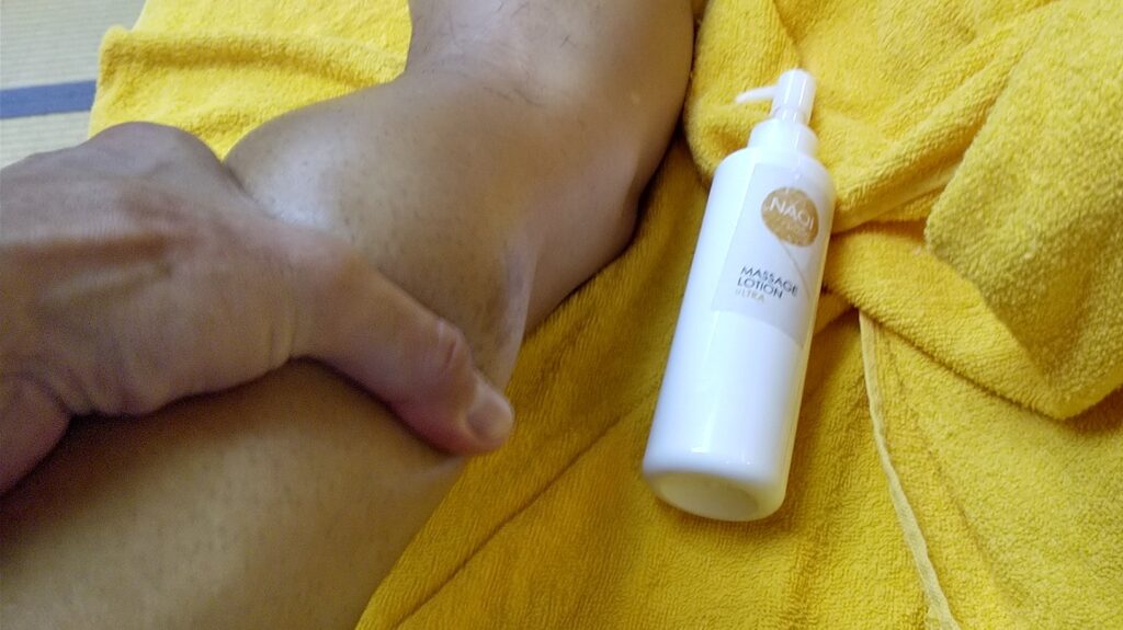 その上で、オイルを用いてマッサージをすることで、筋肉の緊張をさらにほぐしていきます。