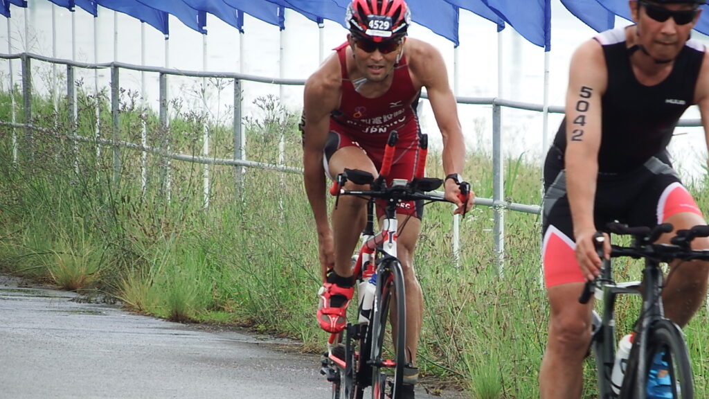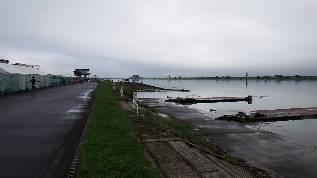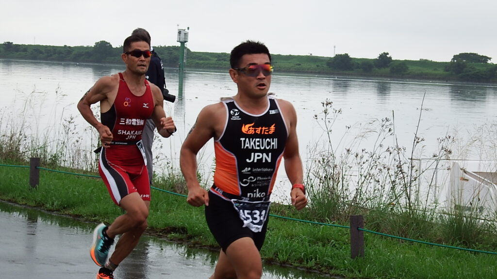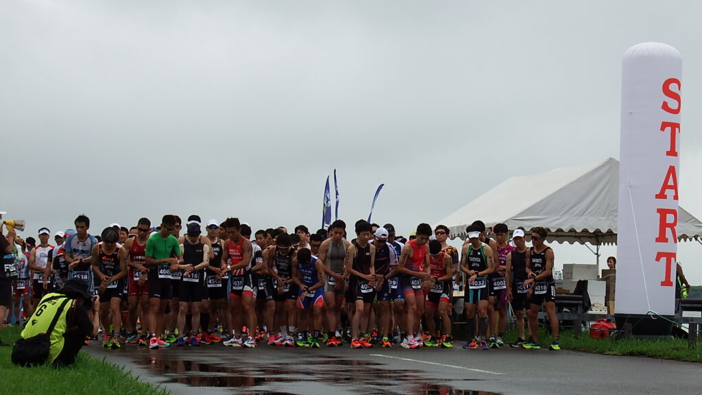 前日までの豪雨による河川の増水のため、スイムが中止となりデュアスロン競技に変更になりました。(第1ラン5.0km、バイク20km、第2ラン2.5km)